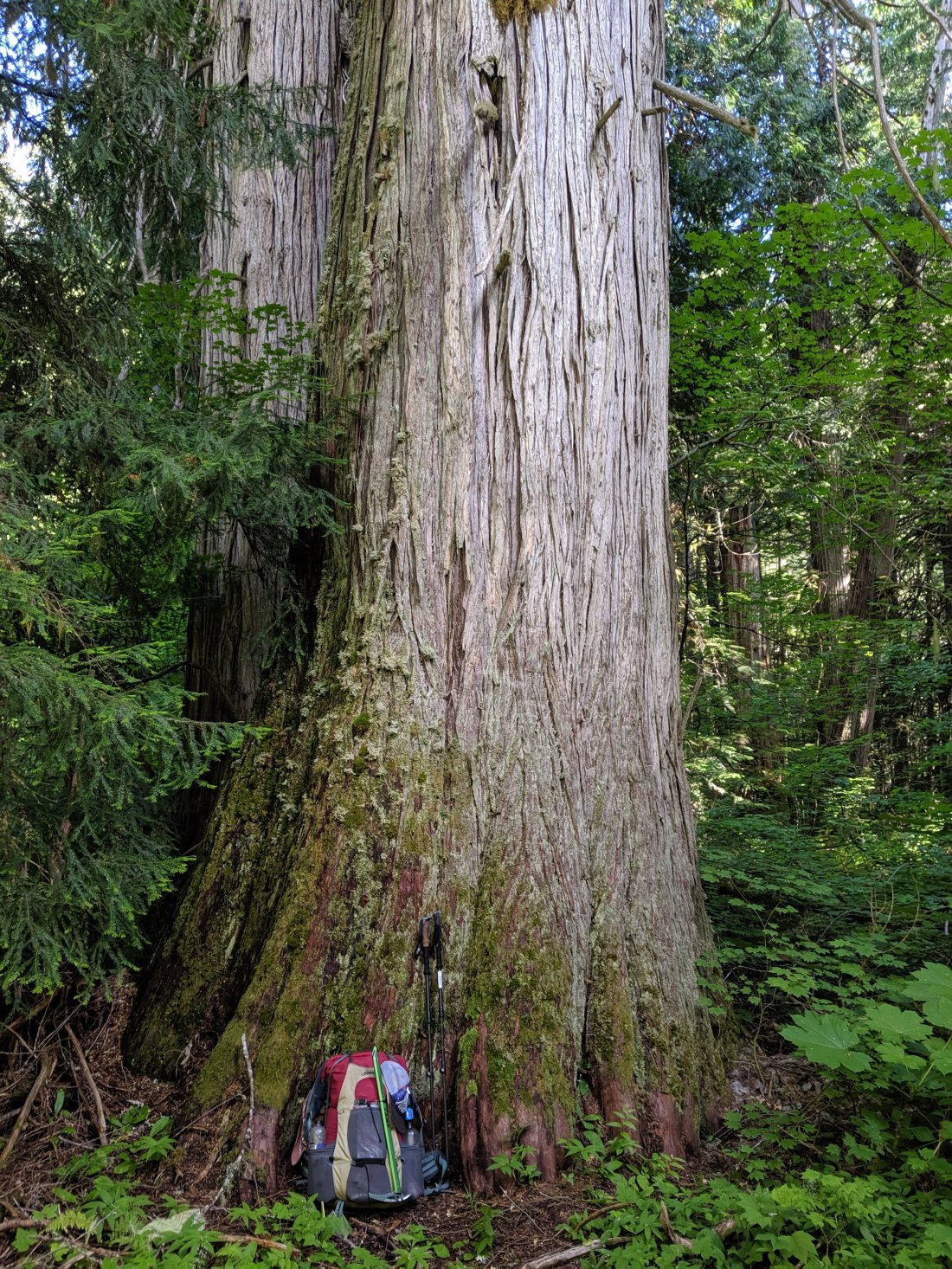 I hiked with Watercolor most of that day, although we ended the day with Plugging Along again. It was a sunny day. In the morning we hiked through a beautiful old growth forest, all enormous cedars, lush mosses and ferns. It was familiar in a way and I felt the ancient souls of the trees more than I looked at them.