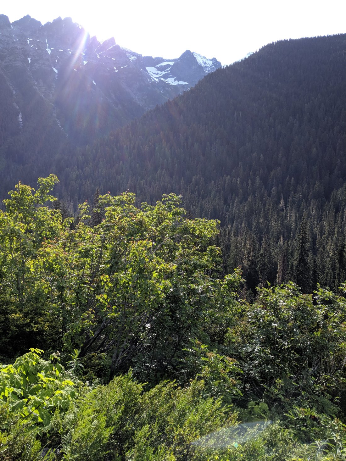 I hiked 17 miles along South Fork Agnes Creek. Somewhere along the way I entered Glacier Peak Wilderness. That day was my first encounter with the “car wash” that would become regular for the rest of the section. While it wasn’t actively raining, the thunderstorms from the day before had soaked the brush that had become overgrown in many sections, making for wet legs and, worse, soaked shoes most days.