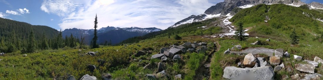 Around noon I got to the top of Suiattle Pass. I ate a huge meal, maybe more than I should have considering the importance of rationing. I needed to spread out my tent to dry, it was wet when I packed it up, and the view from the top of the pass was my first of many stunning views in Glacier Peak Wilderness, and I was seeking some sort of comfort.