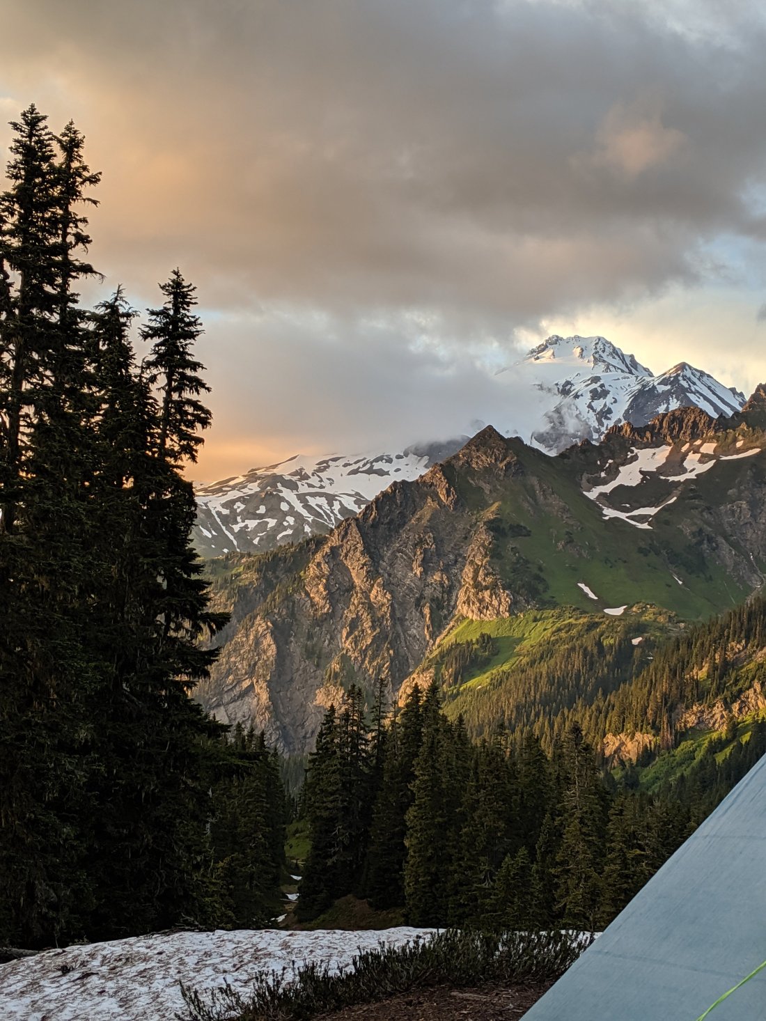 We were camped right under Red Pass, the most difficult pass for a SOBO in terms of snow conditions, and I was relieved enough that the day was over to actually enjoy the view of the sun setting on Glacier Peak.