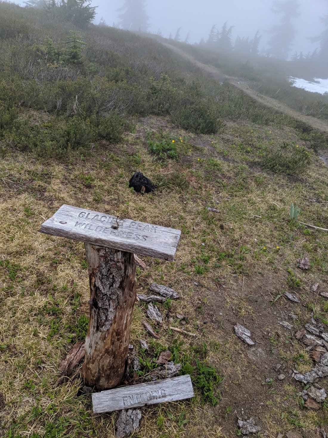 I came across the sign that signaled the end of Glacier Peak National Forest around midday, but I barely noted the achievement. I was feeling quite dejected when I got to camp, my fingers were numb, I couldn’t untie my shoelaces which were soaked and it took several minutes if focus to peel off my wet socks that had become a second skin. I got in my sleeping bag to get warm about 5:30. I was laying there, too cold to read, trying to warm up, and I remembered what my sister had written me in her parting note to me, to remember to celebrate my victories. I had cleared the toughest mountain pass and the toughest wilderness of the trail that day. I was too cold and tired to eat again, shivering in my sleeping bag, but I remembered to be proud of myself. Once I got myself warm enough, I even felt it a little bit.