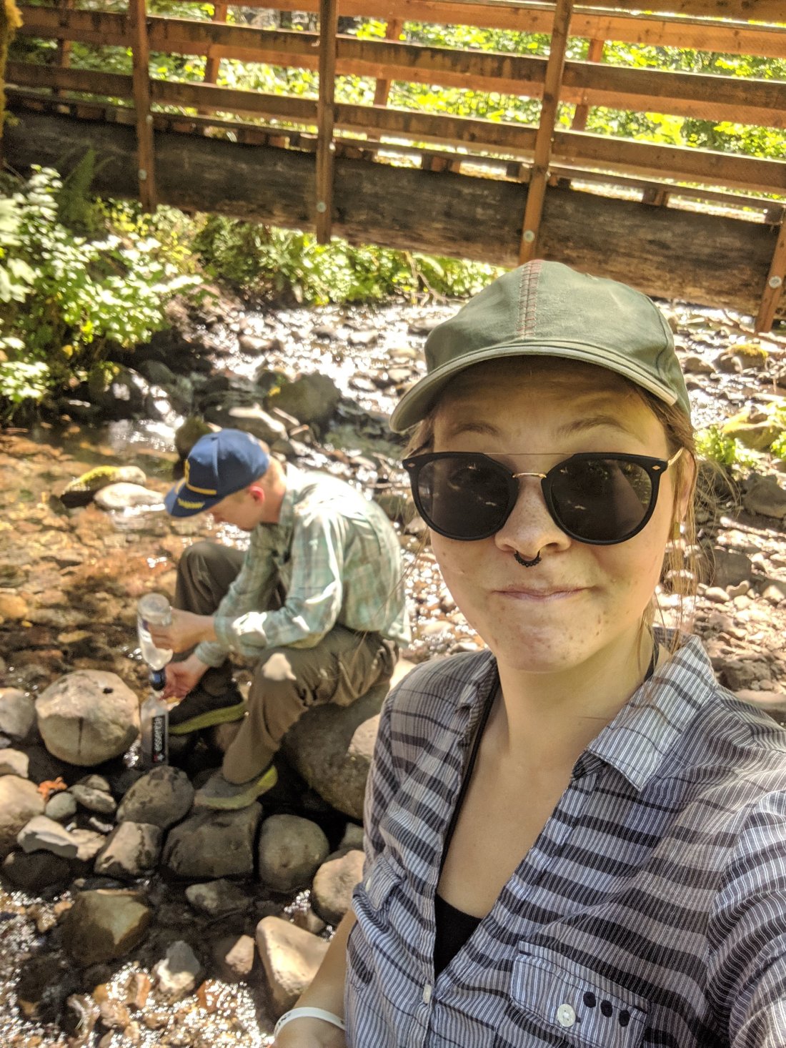 I had a blister on my heel and arch of my right foot, and one forming on the heel of my left. I taped them up before leaving Timberline, but it didn’t seem to be helping much. I didn’t want to try to drain them until we got to camp but the pain became intolerable around mile 8 so we stopped by the side of the trail at a fire road crossing. O’Well made some food and fed me spoonfuls while I sterilized a needle, cleaned as much of the dirt off my feet as I could, and punctured the blisters on my right foot to let the fluid drain out. I taped them back over with leukotape, that was the only blister care I had, and we hiked the last 8 miles into camp. We were both a little delirious by the time we got there. We talked about getting a two person tent to share instead of both packing our own. It was a big decision to make and we didn’t want to rush it, but the convenience of lightening our packs was a big draw. We had only known each other for a week and a half, dating for just a few days though. We had already been through so much together, it felt like much longer. Every day on trail feels like about a week in normal life. I’ve since been told by multiple people that trail relationships are basically just one long first date and I can see what they mean, we spend 99% of the day together, but somehow we haven’t gotten sick of each other yet. (*This is still true as I write this over a month later.) O’Well had me at, “D’you wanna cuddle by the creek?” spoken in his soft North Carolinian accent with a nervous grin. There was something hopeful about it, something final, decisive. My fears about getting into a relationship dissolved early on.