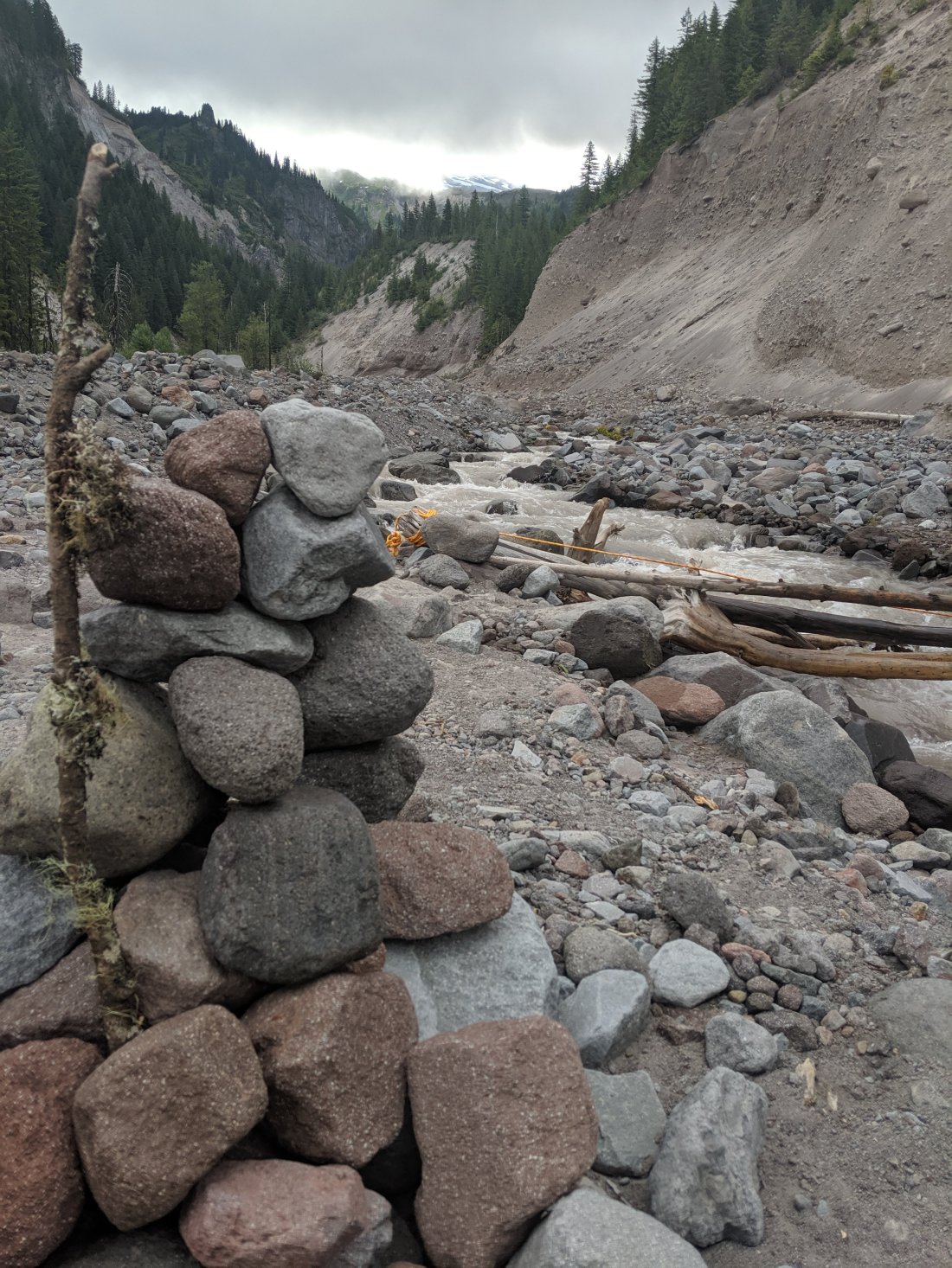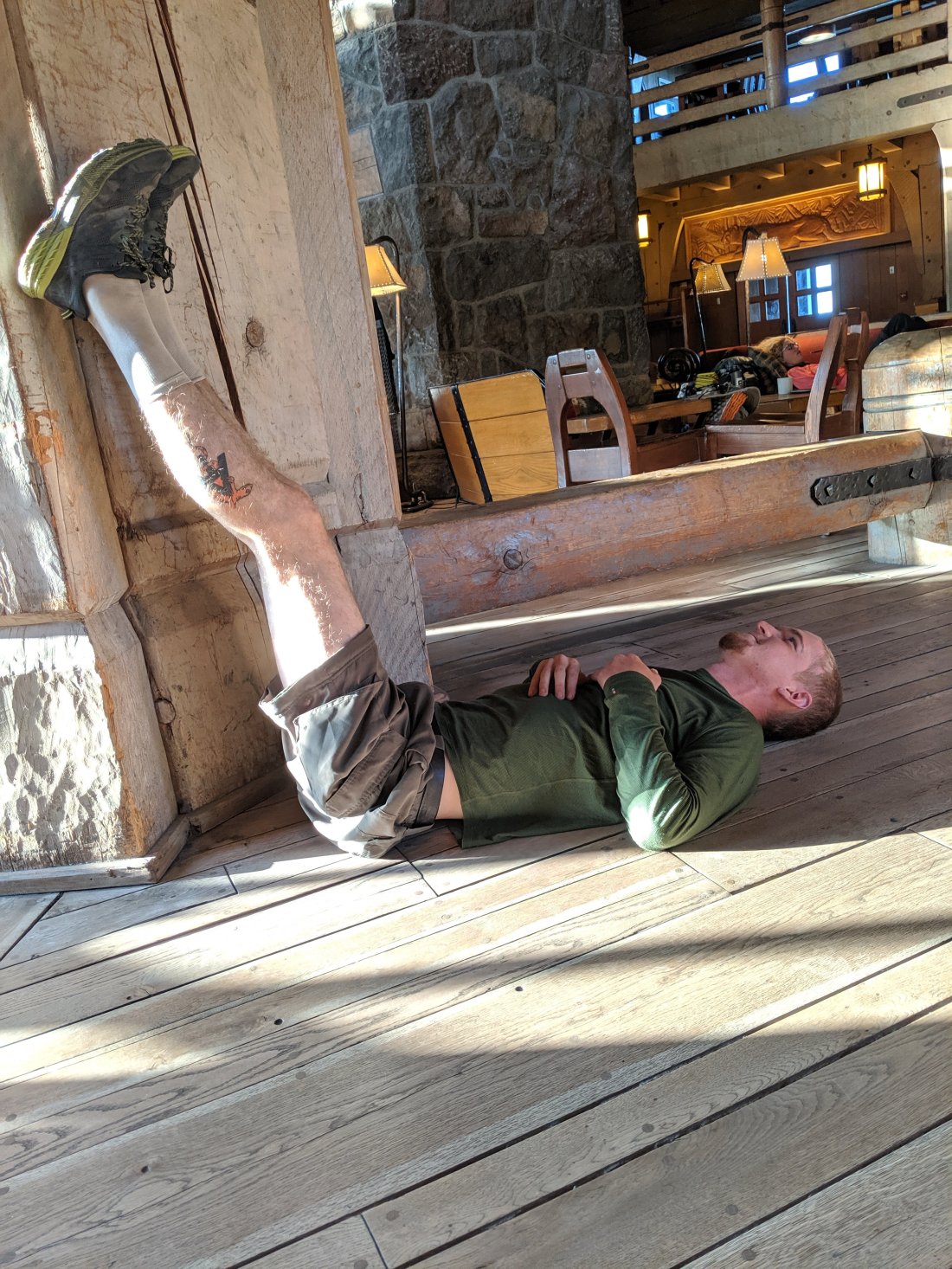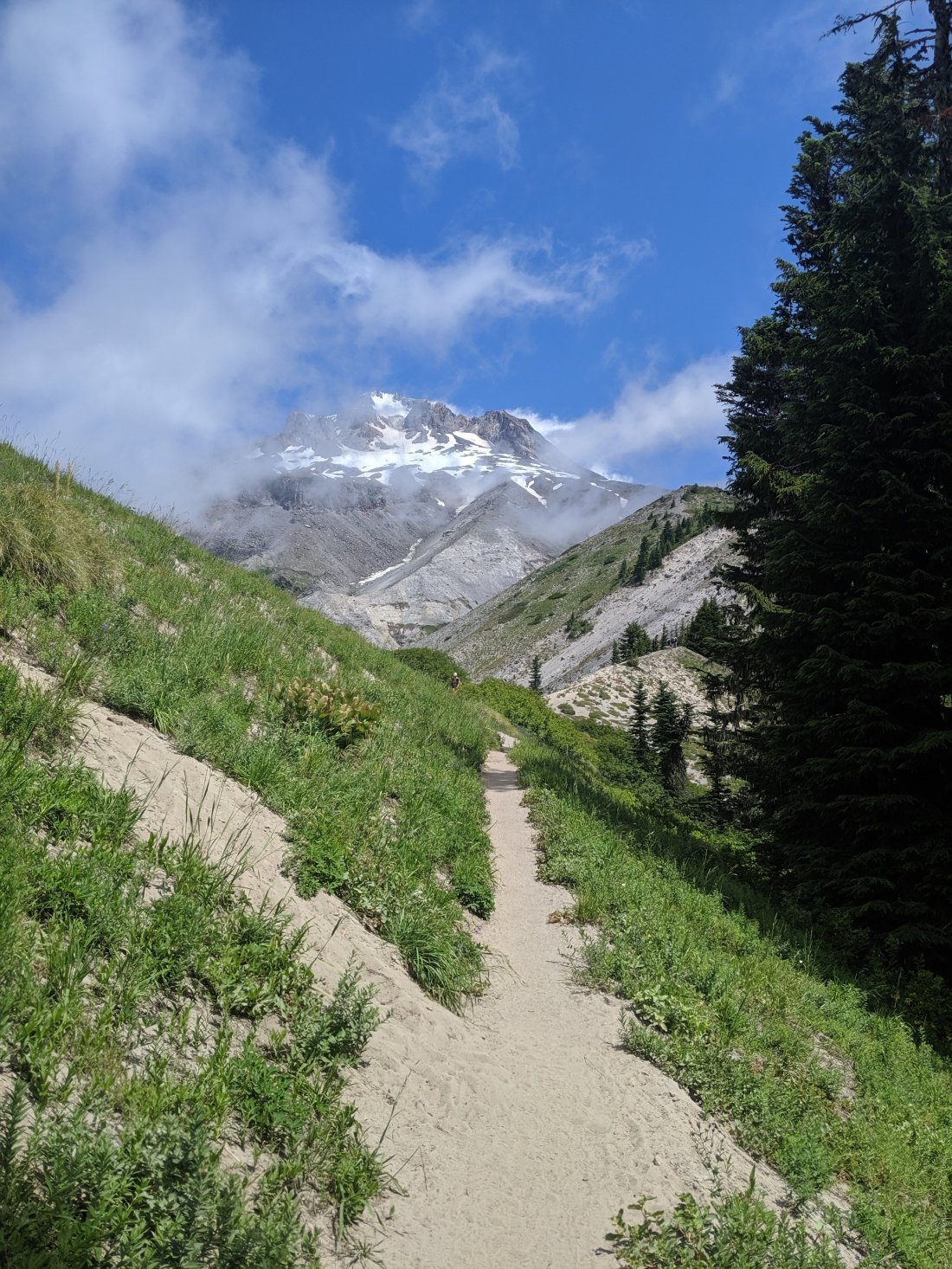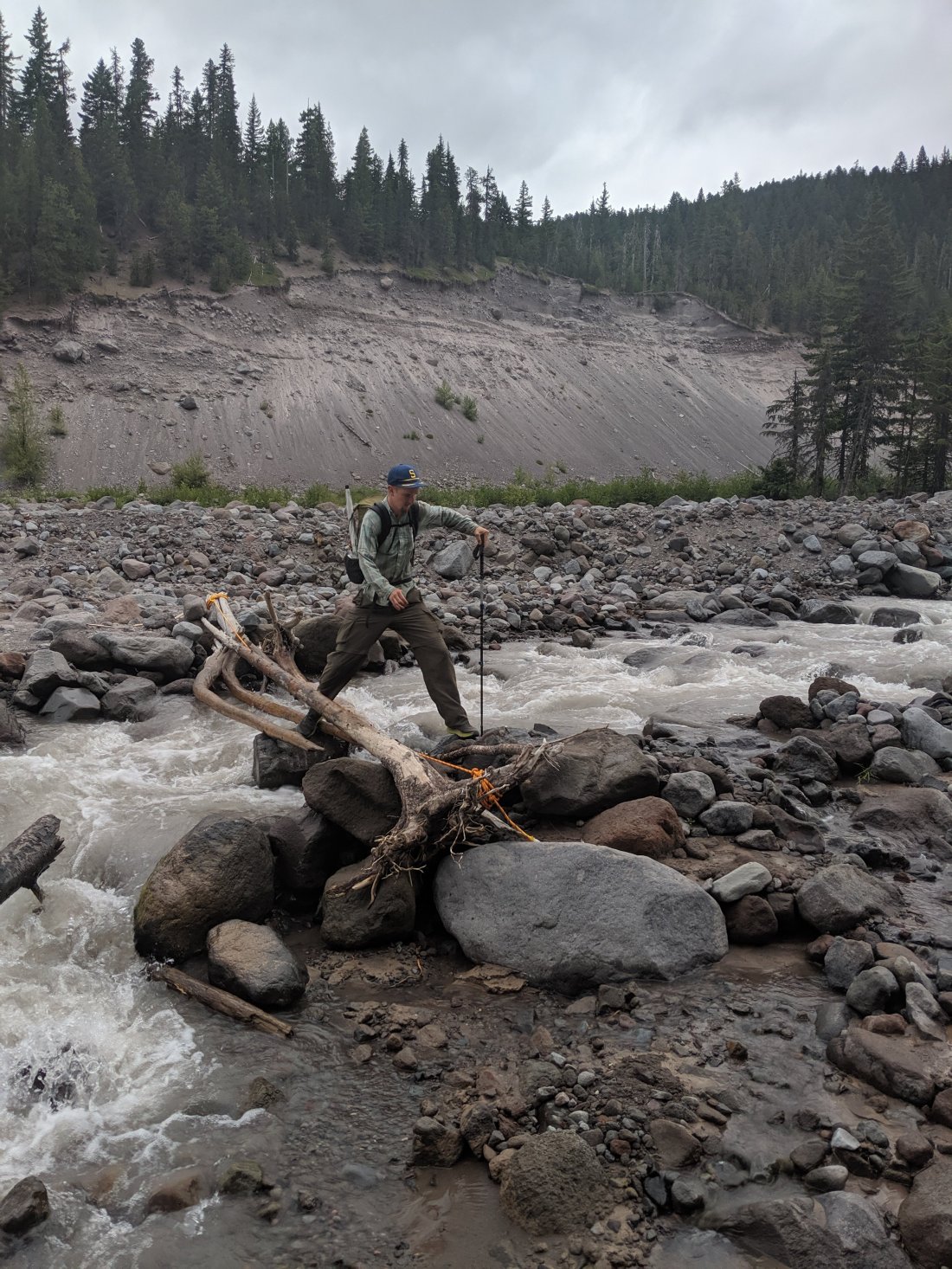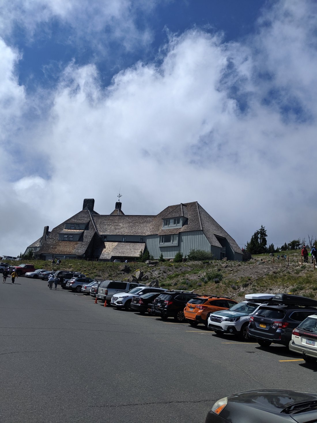 We hiked 10 miles up a huge hill to Timberline Lodge, going from about 2,500 foot of elevation up to almost 6,000 in that 10 miles. I was spent by the time we reached the top. The closer we got to the lodge the more day hikers we saw, it was the weekend and Timberline is a big tourist spot it turned out. It was like a highway trying to get up the mountain, but they provided excellent entertainment during a truly brutal climb. We saw a cute Chinese family who all looked thrulled to be out in nature, and a Mexican mom was trying to calm the screaming child she held in her arms like a sack of potatoes, “¡Mira, mira Las sillas!” She pointed the kid towards the ski lifts to distract him. There was a moment where you had to cross the a small creek and there was only one descent route across, creating something of a traffic jam. The tourists wobbled across the rocks precariously in a way that would have been comical if they weren’t blocking the way to the buffet waiting for us at the Lodge.