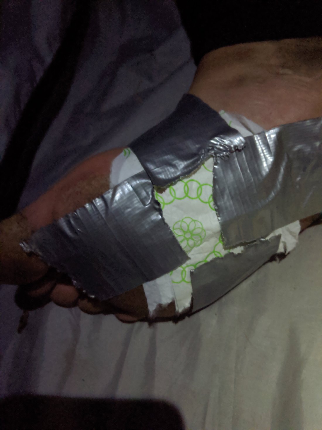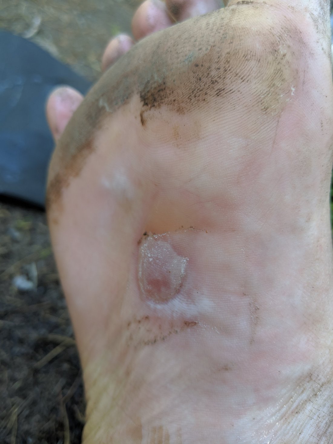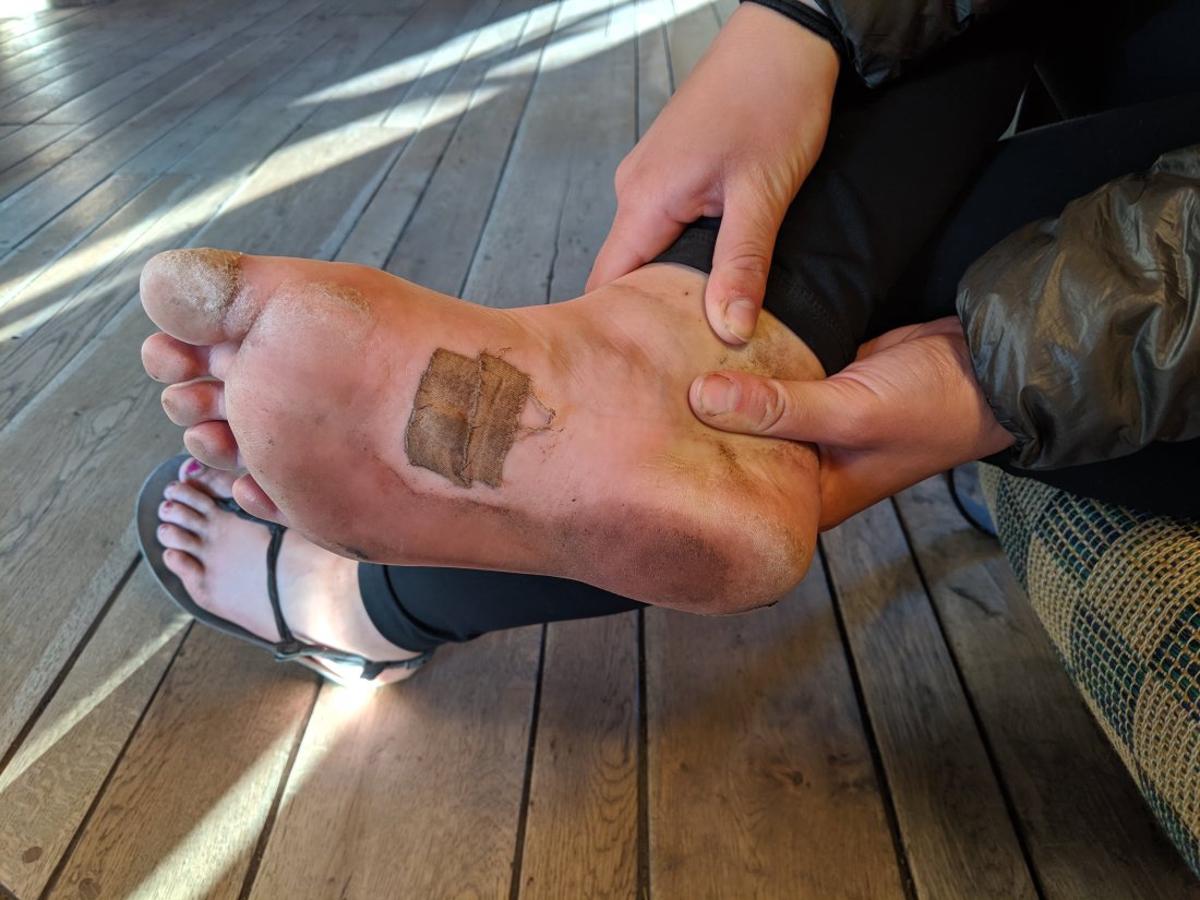 I had both my feet wrapped in ace bandages by that point and it seemed to be working. The newer blisters on my left foot I hadn’t popped yet but I had leukotape layered in a circle around them to take off the pressure. The ones on my right foot I had drained I was doing my best to keep clean, applying antibiotic and keeping covered with sterile gauze pads. They felt good, and when I finally took the bandages off at the end of the day they looked much better.