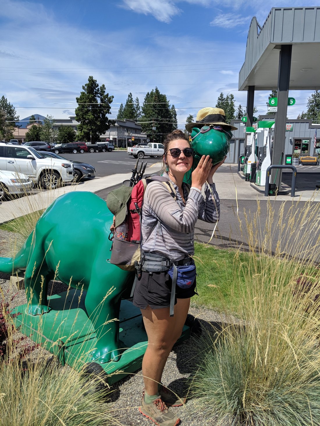 I ate a huge wrap and a whole pint of mint ice cream, and some seaweed crackers and hummus. We walked over a mile to the post office to pick up my liner socks. Town walking is the worst. While O’Well napped on the bench out front (thru hiking is the closest I have ever felt to a homeless person) I contemplated my blister situation. I came to terms at that point with the fact that I needed to get new shoes. The problem wasn’t going away. I had my liner socks but the consensus seemed to be that shoes would help. I was approaching 600 miles on my shoes, and they are really only rated for 300-500 miles. There was an REI in Bend, a 30 minute hitch, and I really didn’t want to go, it would mean staying in Sisters overnight instead of getting back on trail that day. I didn’t seem to have much choice. We caught a hitch around 3 pm and were on our way further from the trail.
