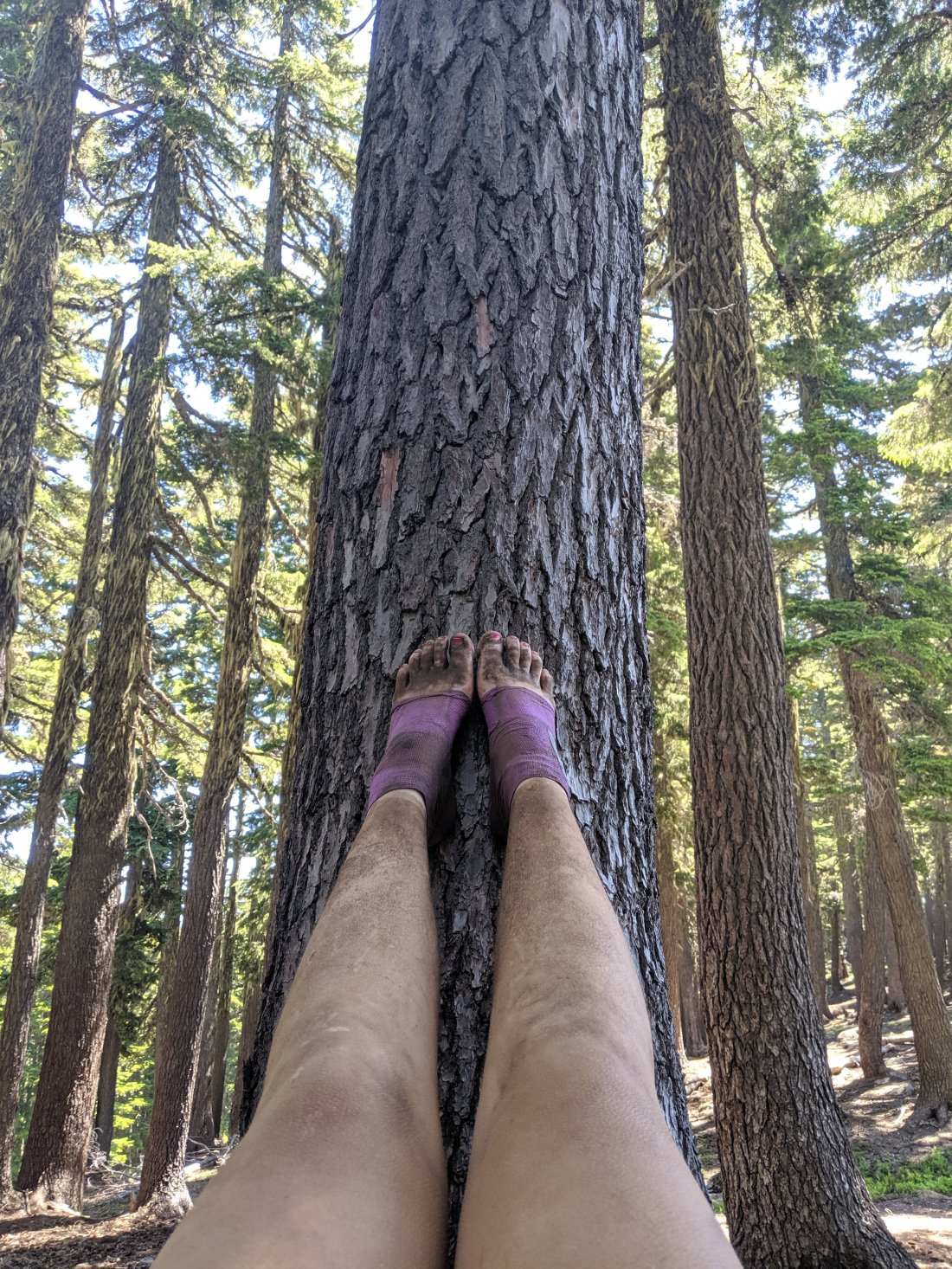 Hiking with it all wrapped up felt much better than the day before, the extra layer of protection kept the friction down as well as keeping most of the dirt out of my wound. My right foot was on its way to healing. My left foot would be a different story, but for that day anyway my feet felt much better.