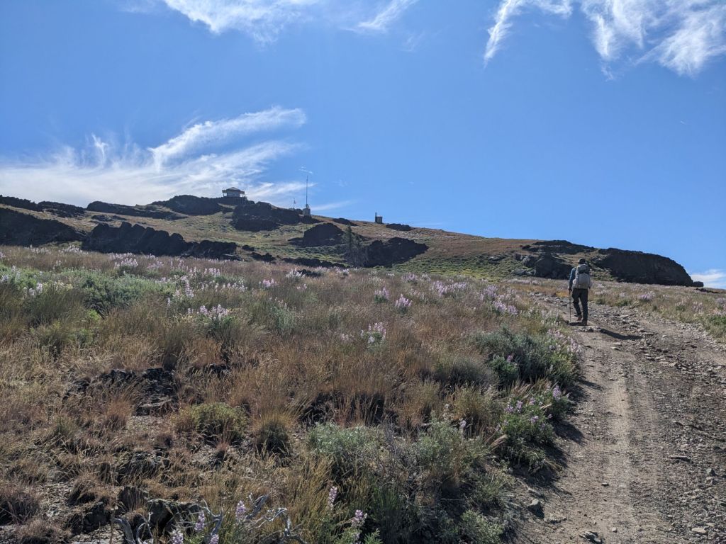 We had two days of long water carries, needing to pack 3 liters each to last the whole day. Fortunately our packs were getting lighter as we had eaten most of our food, but water is very heavy and the mornings were a struggle. On the second to last day of the section we had a long, gradual road walk up to Table Rock first thing in the morning, and I really felt the extra weight in my pack. I didn’t realize until we were almost to the top that there was a fire lookout tower at the summit, and we were surprised when the lookout invited us up, offering us water top offs, and bags full of candy to take with us. We chatted with her for 30 minutes or so about her job as a lookout and the fire that had come through the wilderness a few years back. She warned us that the next section was a bit of a slog as we traversed the lower foothills between Strawberry Mountain Wilderness and then Wallows, but that the payoff would be spectacular. We went on our way, happy hikers.