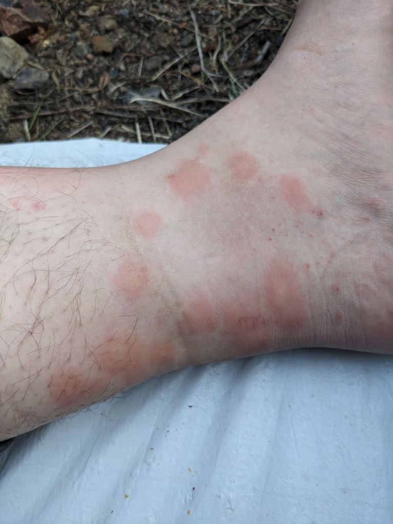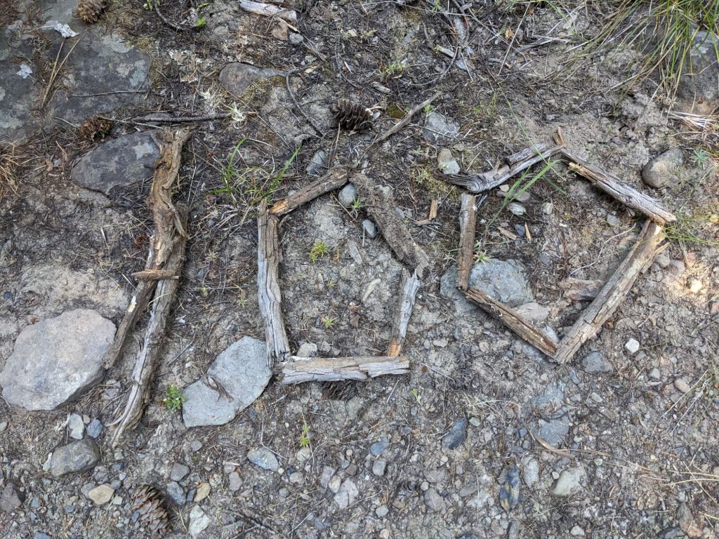 The next day passed much the same, easy road walking and miles slipping away under our feet. I kept thinking of the song Take It Easy, and the line “Don’t let the sound of your own feet, drive you crazy,” as the gravel crunched and we tried to pick out the ruts in the road that were a little smoother and easier to walk in. My headspace was generally very light though. I remember from the PCT the day before getting to town often being a slog, the anticipation for a good meal and a shower totally overriding my ability to stay focused on the task at hand, but it wasn’t like that now despite being in a green tunnel for the most part of the day. I narrated the plot of my book to John for a while and we took our normal breaks, first lunch at 11 and second lunch at 3 with intermittent water breaks as water sources were available. O’Well and Gretzky skipped rocks for 30 minutes at first lunch, and we stopped for 90 minutes at second lunch as we had already done 17 miles and only planned to do 3 more for the day. We got to where we wanted to camp at 20 miles for the day, and found it was really buggy and kept hiking in hopes it would clear up but it really only seemed to get worse. We eventually stopped and camped in the middle of a disused FS road and just jumped in our tents and ate dinner inside.