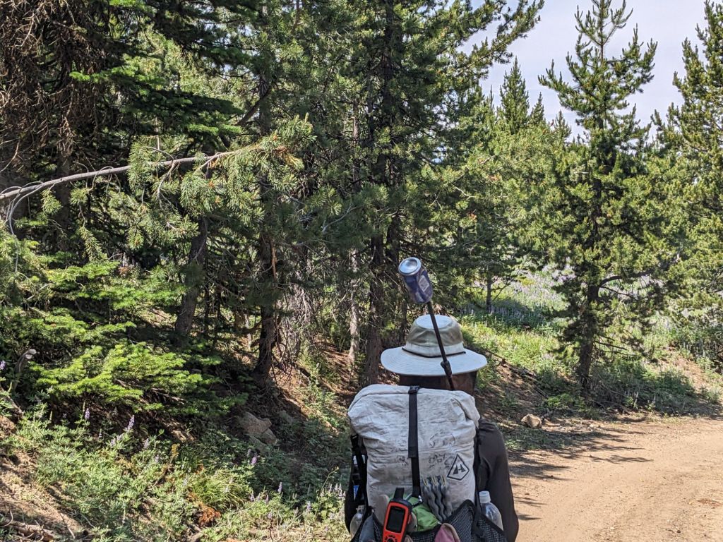 On the last descent from Elkhorn ridge I was hiking alone when I passed a hunter in a t-shirt with very minimal gear. “Have a good day!” I said brightly, “Don’t let the bugs getcha,” I grinned. I was wearing my rain coat which mosquitoes can’t bite through, my pants were dowsed in spray and I had a mesh head net over my head – I was prepared for battle. “Yeah… you don’t have any bug spray do you?” He chuckled and I whipped out my can from my water bottle pouch like it was a holster. We was very relieved and asked me if I had seen any mountain goats. I said that I had too quickly before I realized that he wanted to shoot them, and quickly followed up by saying they were about 20 miles back, “Way back!” I insisted vigorously.
